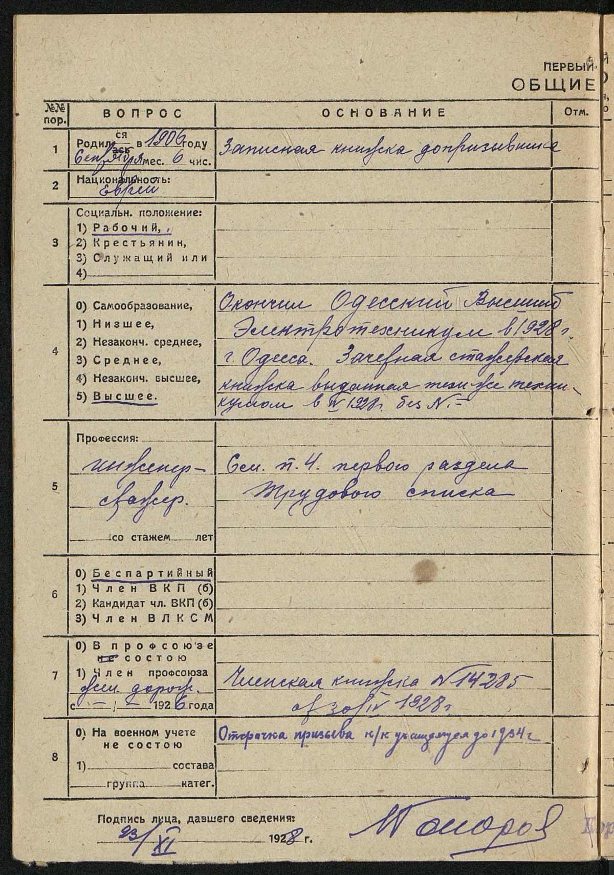 Собирая по крупицам информацию о двоюродном дедушке открываются новые пути поиска. У деда Льва было высшее образование, в 1929г. окончил Одесский Политехнический институт. Оказываются были дети, дочка названа скорее всего в честь своей бабушки, мамы Льва Семеновича, Ольги Марковны. А сыну Юрию на момент ареста отца было всего 4 месяца... Где они, что с ними было, пока не известно... Спасая своего младшего брата Абрама (моего родного дедушку) Лев Семенович назвал сотрудникам НКВД его домашнее имя - Сашка, поэтому записали его Александром. Видимо это и спасло Абрама Семеновича в то время от ареста и расстрела, ведь он тоже работал у брата электромонтером в цехе сетей и подстанций КМК, а перед началом арестов из Сталинска уехал в Новосибирск. В Новосибирске 08.10.1937г. арестовали старшего брата Бориса Семеновича. И он тоже в показаниях назвал младшего брата Александром.